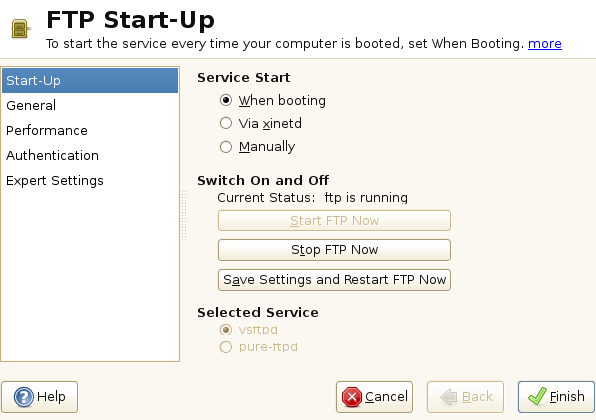 The frame of the dialog shows which FTP server is used. Either vsftpd