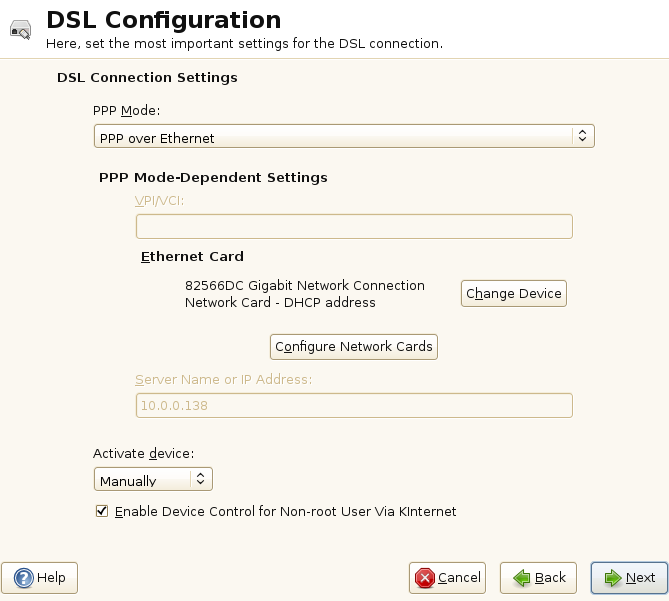 as your provider and YaST opens the T-DSL