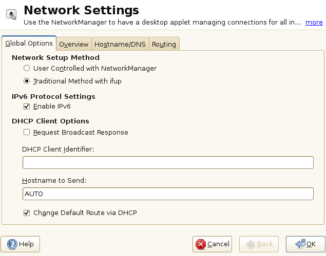 options, such as the use of NetworkManager, IPv6 and DHCP client options. These