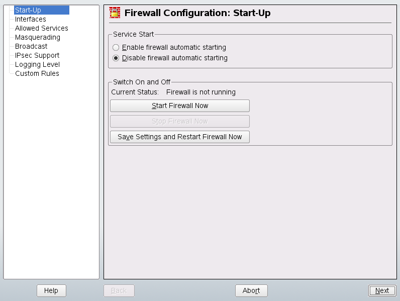 Section 33.4.1, Configuring the Firewall with YaST). It can also be made manually in