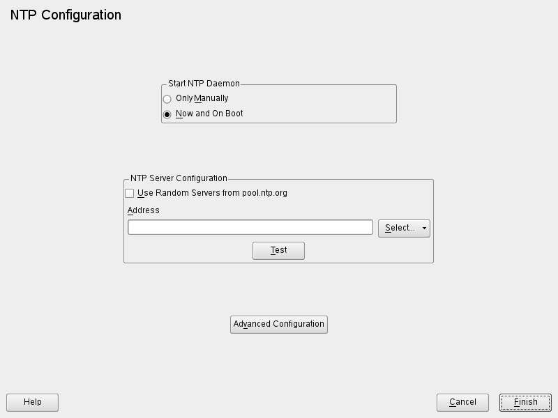 consists of two dialogs. Set the start mode of xntpd and the server to