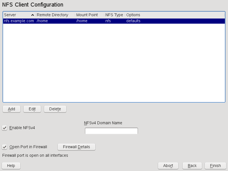 box. When using NFSv4, make sure that the checkbox is enabled, and that the contains the same value as used by the NFSv4 server. The