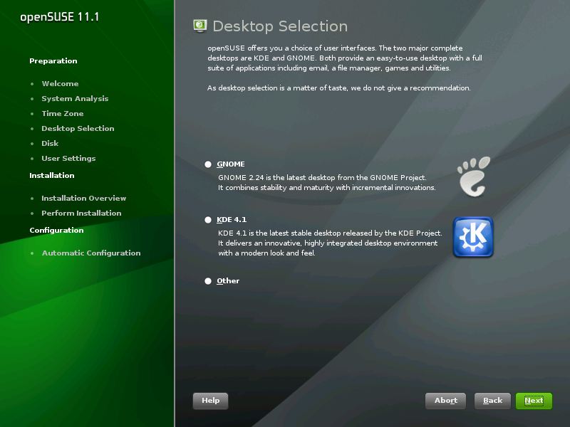 not available when installing from the CD-KDE or CD-GNOME). The major