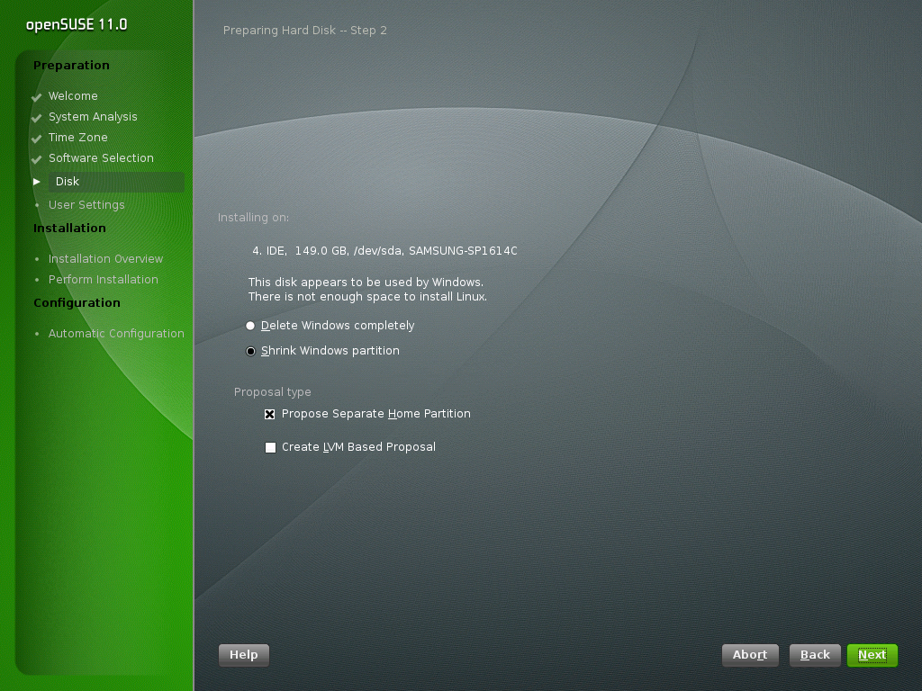 partition, YaST offers to delete or shrink this partition. If you