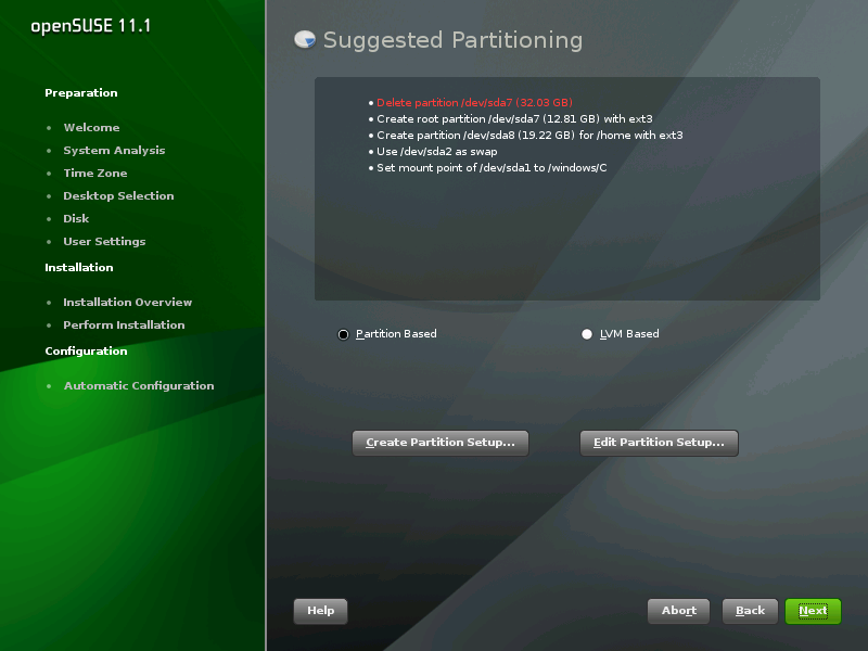 you turn to the partitioning setup, proceed as before and select