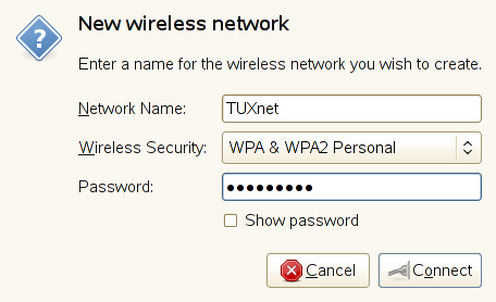 In the dialog that opens, enter the ESSID and set encryption parameters