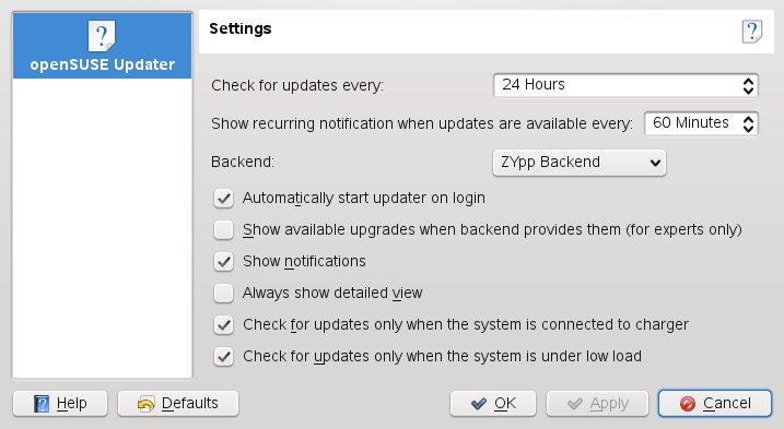 3.3.3 Configuring openSUSE Updater
