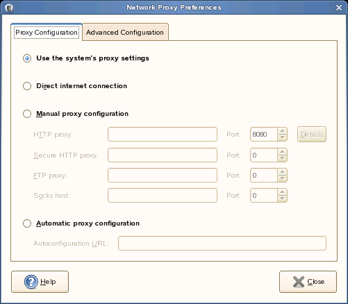 The Network Proxy Configuration tool lets you configure how your system