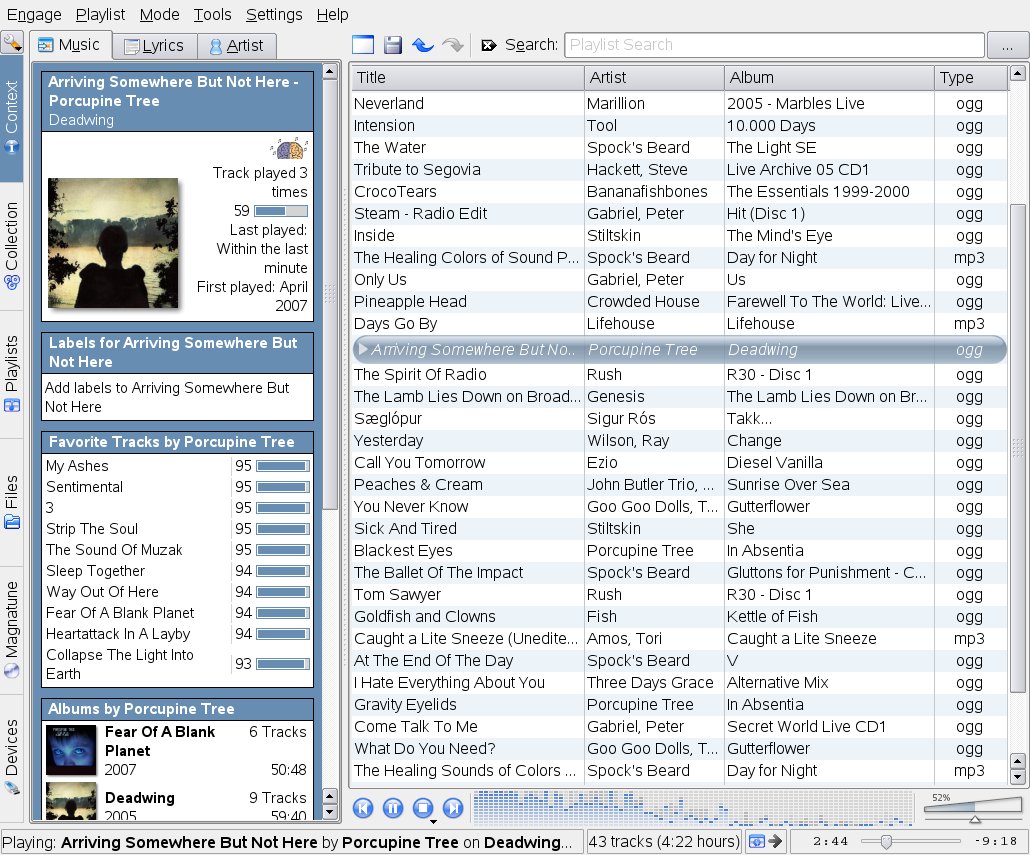 views: your music collection, a context browser, your playlists, a file