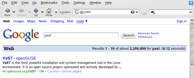 search engine, just type gg:yast into the Konqueror