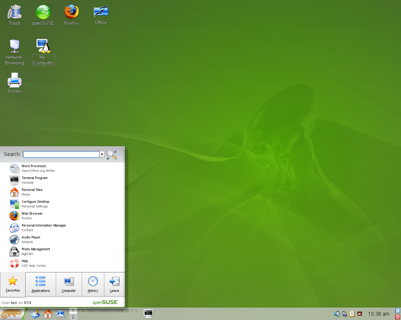 green SUSE icon in the left corner of the panel. The function-oriented