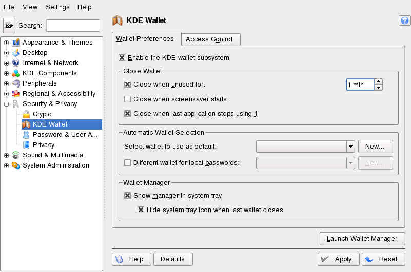 Adjusting KWallet Settings