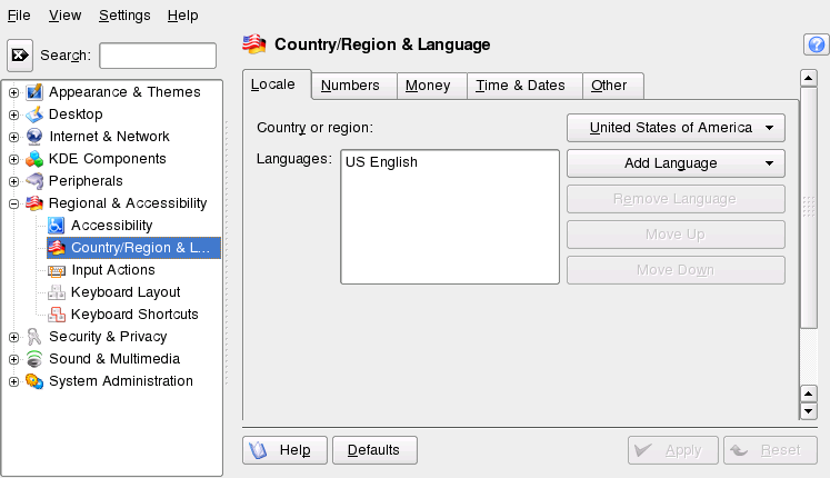currency, select the desired country as the default country in KDE. If more