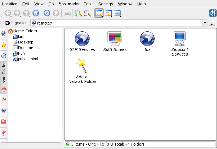 in the location bar. Konqueror then opens a virtual folder that displays the