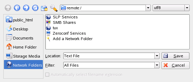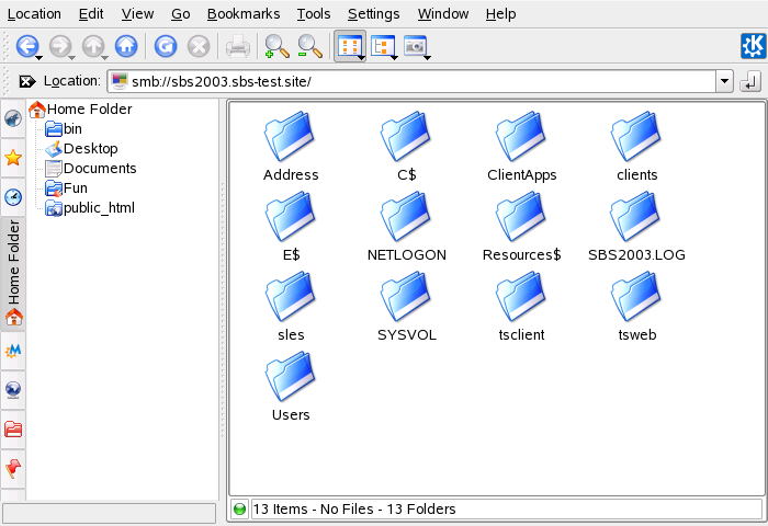 This opens a Konqueror window displaying all Samba workgroups and domains