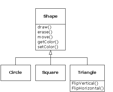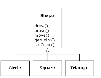 of shapes are derived (inherited): circle, square, triangle, and so on, each of