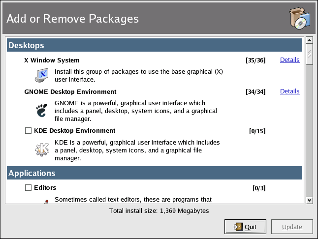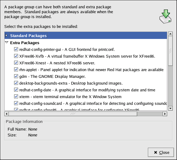 extra packages is displayed, as shown in Figure 16-2. Clicking on the package name displays