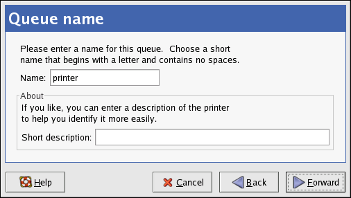 (_). Optionally, enter a short description for the printer, which can