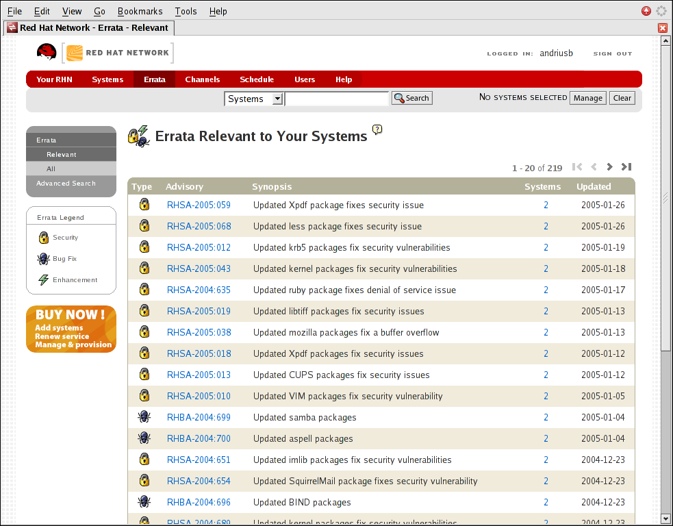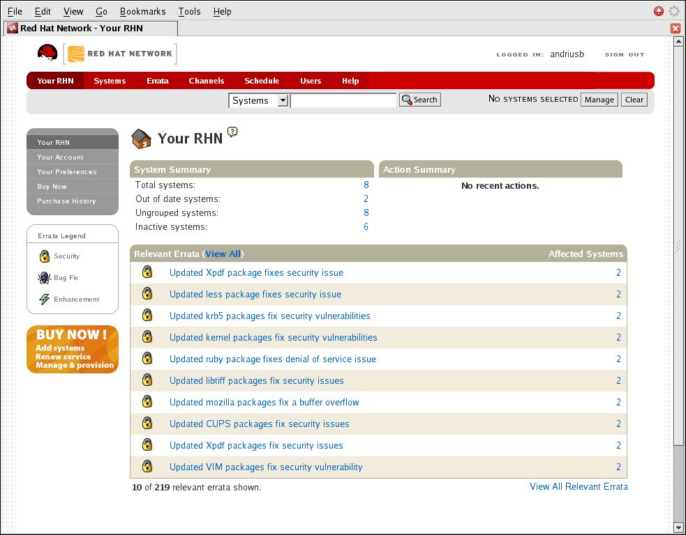 Red Hat Network website — Manage multiple systems, downloaded