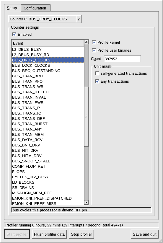 On the Configuration tab, to profile the kernel,