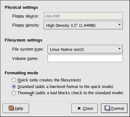 gfloppy. Refer to Section 13.1.3 Formatting a Diskette for more detail on