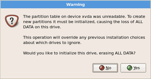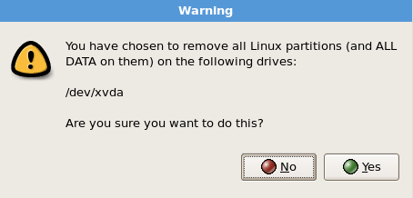 The installation prompts you to confirm erasure of all data on the storage you selected for the installation: