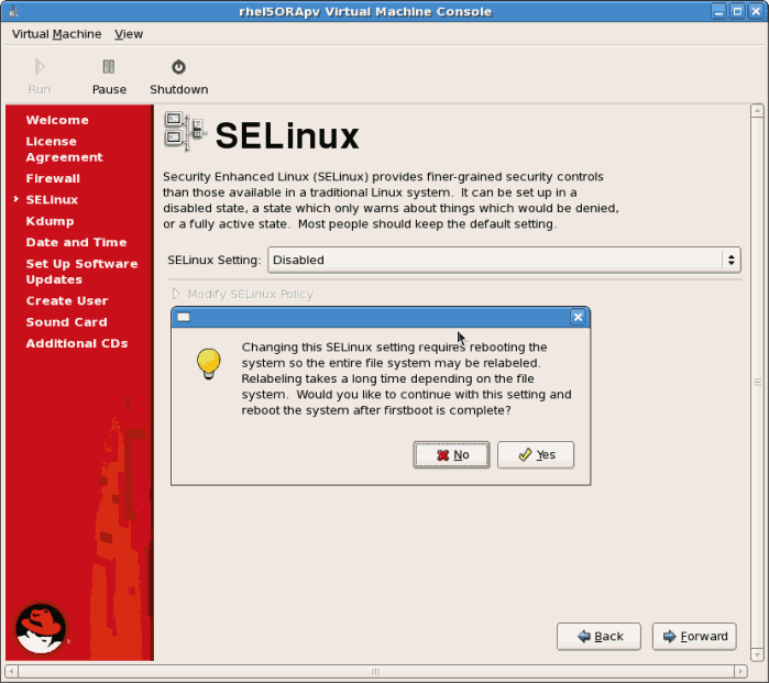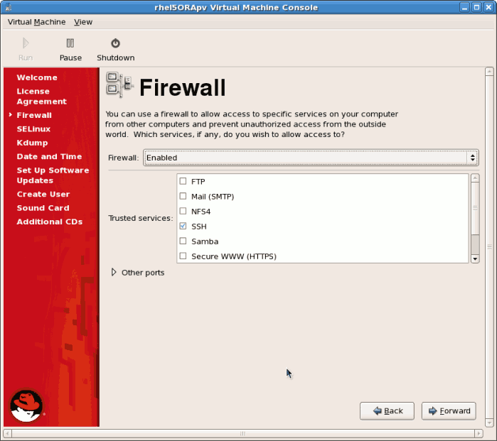 You can to install any additional software packages from CD you could do so on this screen. It it often more efficient to not install any additional software at this point but add it later using yum. Click