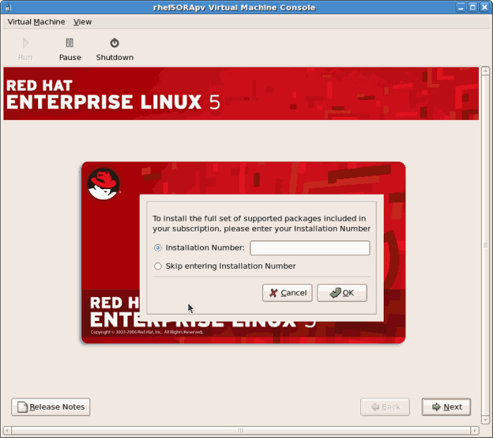 Enter a valid registration code. If you have a valid RHN subscription key please enter in the Installation Number field: