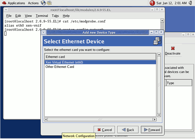5. Select the ' Xen Virtual Ethernet Card (eth0) ' entry and click ' Forward '.