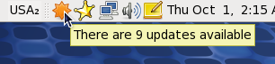 PackageKit displays a starburst icon in the Notification Area whenever updates are available to be installed on your system.