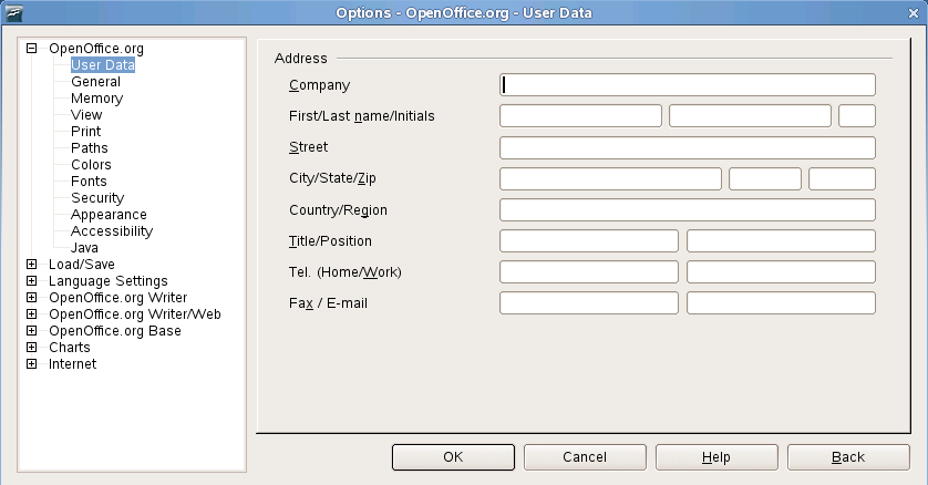 Use the dialog to modify OpenOffice.org