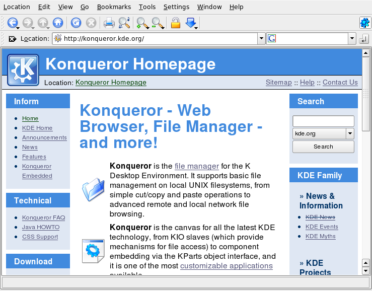 panel, Konqueror opens with the Web browser profile. As a browser,