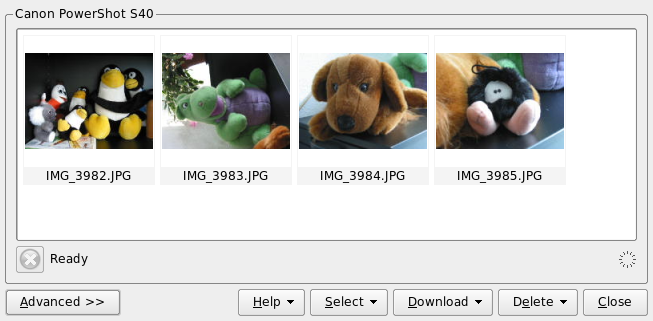 Digikam is a KDE program for downloading photographs from
