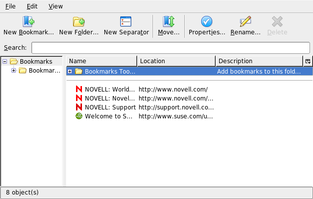 The bookmark manager can be used to manage the properties