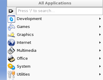 , (a menu with all applications sorted