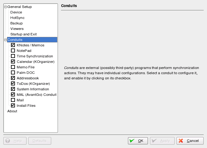 6.1 Conduits Used by KPilot
