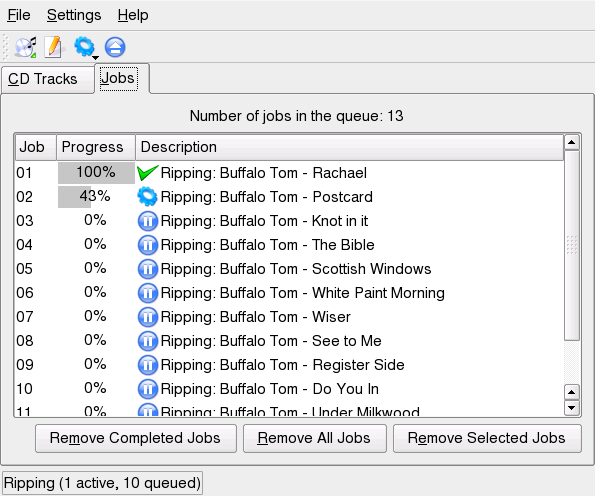 started, it lists all the tracks of your CD in the tab. Select the tracks to rip and encode.