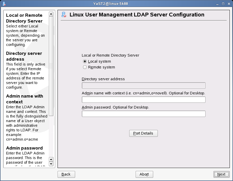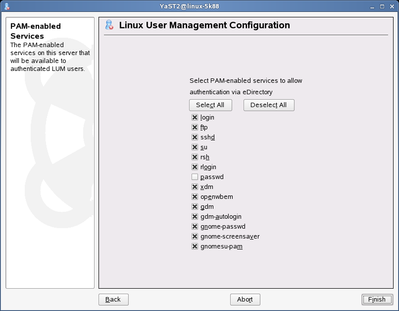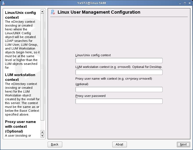 To install and configure LUM during the SUSE Linux Enterprise Desktop installation, select